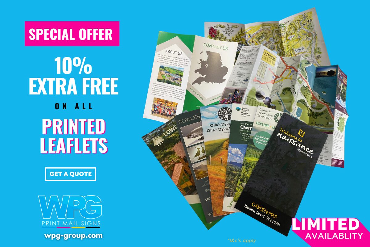 T&Cs apply. Offer includes a complimentary 10% overprint on leaflet orders placed before 31st January 2026. Minimum order of 500 leaflets. Offer cannot be used in conjunction with any other discount, promotion, coupon, or specially negotiated prices. Subject to availability.